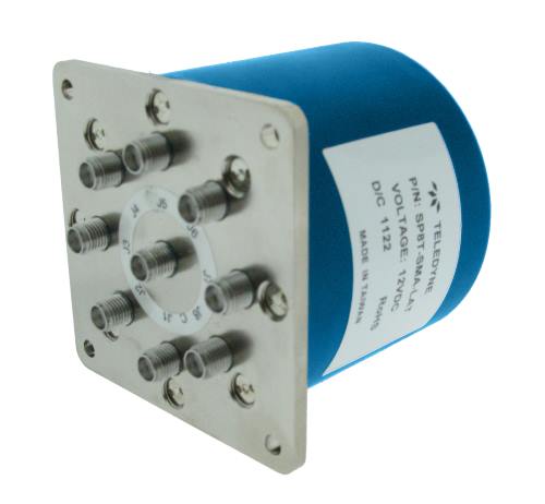 Normally open, SP8T Multi-Throw switch, 50Ω impedance Available in Commercial models, with SMA connectors DC-12GHz |